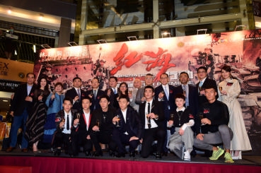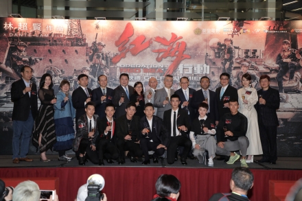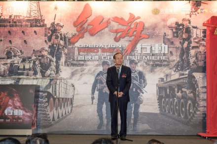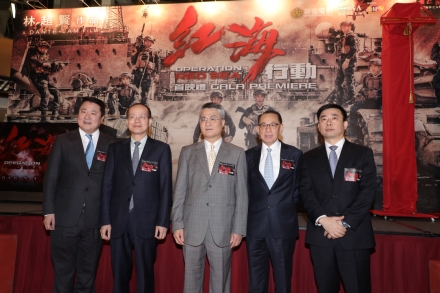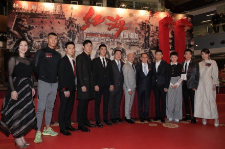 由英皇影业有限公司、博纳影业集团股份有限公司、中国人民解放军海军政治工作部电视艺术中心及星梦工厂文化传媒(上海)有限公司共同开发与投资,「魔鬼导演」林超贤执导,根据2015年也门撤侨行动真人真事改编,远赴摩洛哥荷枪实弹实地拍摄的动作巨铸《红海行动》,在今个农历新年引起全球哄动,狂热从中国内地猛烈引爆,再经新加坡、马来西亚、澳洲、纽西兰及北美各地不断燃点,万众期待,终于登陆香港接力,今晚(27号)假座九展举办盛大首映礼,英皇集团主席杨受成博士、博纳影业集团创始人兼董事长于冬荣幸邀得中联办副主任黄兰发、杨健、外交部驻香港特别行政区特派员公署副特派员杨义瑞、署理民政事务局局长陈积志、中联办宣传文体部部长朱文及民政事务局局长政治助理黎颖瑜担任主礼嘉宾,联同一众主角见证经典的诞生,如雷口碑、犹在耳边!